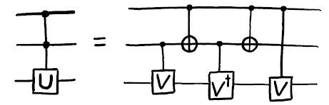 Here is a general Toffoli with operation $U$ instead of $X$: