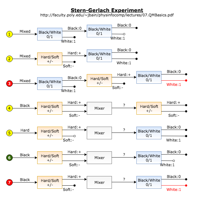 In the above illustration of the Stern-Gerlach experiment, one may interpret Black and White being $\Ket0$ and $\Ket1$, and Hard and Soft being $\Ket+$ and $\Ket-$.